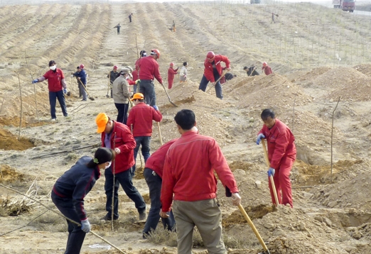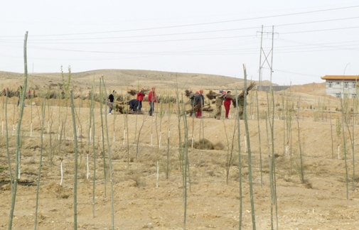 今年公司早在2月底就提前著手,專門行文向永寧縣政府申請(qǐng)樹(shù)苗,截止4月20日,通過(guò)多方協(xié)調(diào),前后三次從永寧縣林業(yè)局無(wú)償申領(lǐng)棗樹(shù)樹(shù)苗3100棵、沙棗樹(shù)苗5400棵、楊樹(shù)樹(shù)苗1065棵、刺槐樹(shù)苗3052棵,共計(jì)12627棵,其中補(bǔ)種去年樹(shù)苗2465棵。