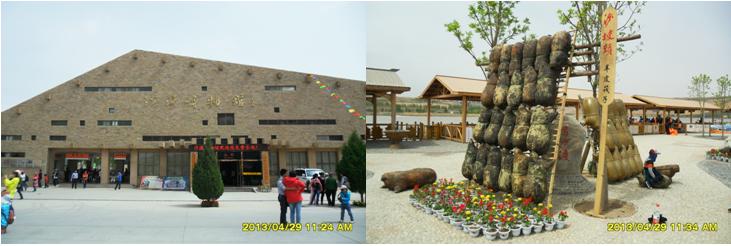我們?cè)谏称骂^旅游黃河區(qū)(南區(qū))買了門票,隨著人流,進(jìn)入景區(qū)。景區(qū)主大門是一個(gè)四四方方的立柱,加上“井”字形建筑造型構(gòu)成,立柱頂部呈長城烽火臺(tái)垛口造型,立柱右側(cè)上部有三個(gè)鎏金大字“沙坡頭”。 在景區(qū)大門東側(cè),是沙漠博物館,它的頂部呈金字形造型,游客可以免費(fèi)進(jìn)去參觀。
